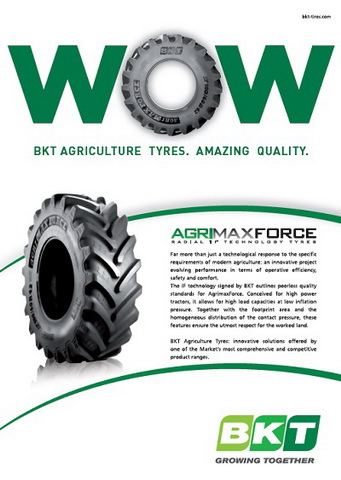 Компания BKT официально запустила новую коммуникационную кампанию «WOW». Характерной особенностью рекламы является восклицание «WOW», в котором букву «О» представляет тракторная шина BKT AgrimaxForce.