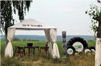 После окончания работы выставки состоялось торжественное закрытие, награждение лучших хозяйств ценными подарками. Тут надо отметить, что лучшими хозяйствами являлись те, кто за год больше всего купил из техники, семян и удобрений. Далее последовал ужин и викторина, в которой приняли участие и мы. Для призов были предоставлены 4 колеса STARCO Flex Lite. Были разыграны лотерейные билеты с номерами гостей, которые они получили при регистрации. Все колеса были успешно получены и при каждом вручении приза мы купались в лучах славы, которые исходили в хвалебных речах от ведущего и победителей. В течении дня на всю выставку были зачитаны рекламные тексты о компании СТАРКО, как о производителе и поставщике шин, колес и камер, а также, как, о партнере Третьего международного агрофестиваля. В заключении на сцену вышла группа ДЮНА и спела. Ну, и сплясала.