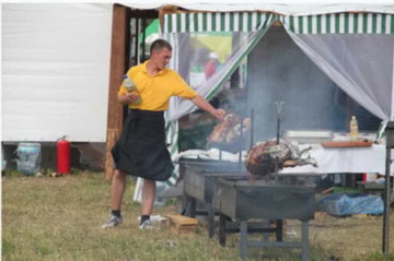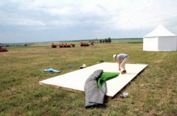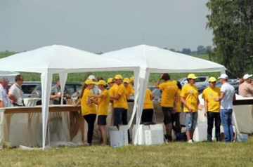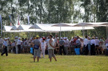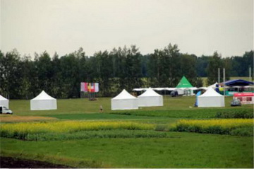 Мест разбить свою жилую палатку было предостаточно. Либо в городке в непосредственной близости к стендам, либо в 500 метрах в березовой роще. Мы выбрали второе, так как там гораздо тише и душевнее. Надо отметить, что гостиниц в радиусе 60 км нет, а федеральная трасса в этом радиусе являет собой, пожалуй, самое узкое место. И преодоление этих километров могло бы занять достаточно долгое время. Мы решили не рисковать, так как рабочее время организаторами расписано буквально по минутам.