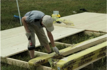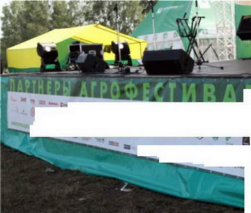 автоприцеп (мы, кстати, поставляем сборные колеса, оси и полуоси для производства автоприцепов), подиум (лаги, половая доска, «травяное покрытие»), палатка и садовая мебель.