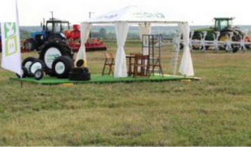 К вечеру было все готово. Под наш стенд мы заняли аж 60 кв. метров — поле-то большее. Машина и прицеп с нанесенной рекламой STARCO составляли часть экспозиции. Новая марка VW как правило привлекает больше клиентов. Задушевные разговоры об автомобиле располагают к нашим специалистам и плавно перетекают в область шин. Несколько случаев было, когда посетители после разговора приглашали поглазеть на диковинку своих знакомых из других хозяйств, а те в свою очередь проявляли интерес не только к VW, но и нашей продукции. Особенно это заметно было в Липецке.