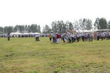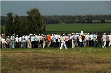 приглашены на опытные поля, где гид рассказывал, что, когда, и при использовании каких удобрений и техники, было засеяно. Путь первой группы пролегал именно мимо нашего стенда. К нашему изумлению после первого прохода были сметены все каталоги без остатка.