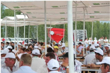В следующем году увеличим количество командированных на этот фестиваль. Замечено большое количество фирм, которые имеют несколько импортной техники. И у многих на следующий год в планах закуп тракторов и комбайнов. Далее последовал обед и непродолжительный отдых. Народ разделился по группам, в которых активно обсуждалось увиденное. После обеда все группы были объединены в одну большую и отправлены на демонстрационное поле техники, а далее уже на поля, где техника была показана в действии. Во время работы техники наш стенд посещали уже вне запланированного времени. Гости подходили равномерно небольшими группами.