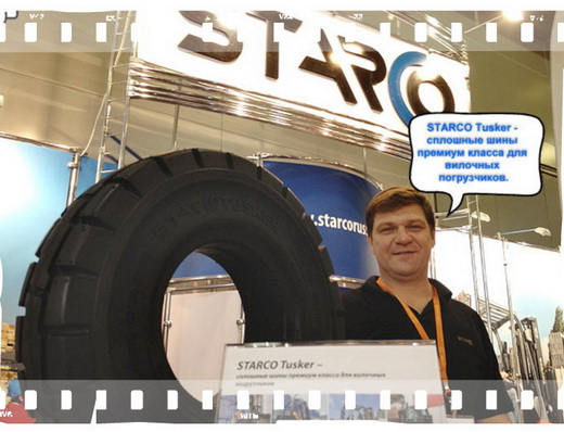 Именно для этого ООО «СТАРКО РУСЬ» развернул здесь свой стенд. Он был небольшой, всего 20 кв.м., но этого вполне достаточно для презентации продукции. ООО «СТАРКО РУСЬ» выставлялись шины для погрузчиков — пневматические и цельнолитые производства известных марок KENDA и DEESTONE. С фирмой KENDA мы сотрудничаем более 25 лет. В прошлом году STARCO и KENDA отмечали