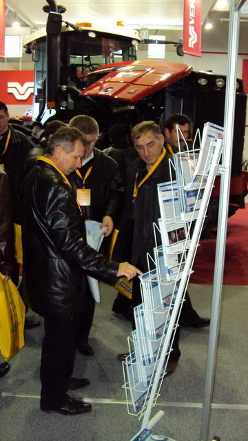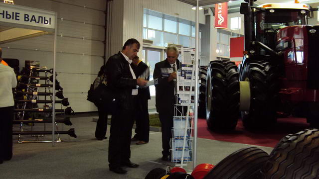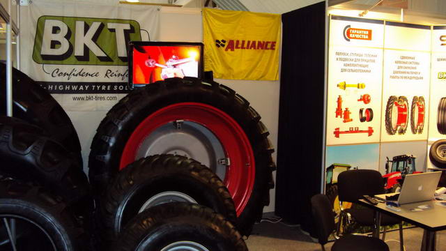 Экспозиция располагалась в главном павильоне выставки в окружении стендов поставщиков известных марок шин-конкурентов для сельхозтехники. Это удачно обеспечивало 100% проходимость и большой интерес к нашей экспозиции.