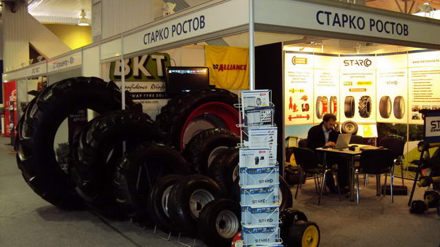 Экспозиция СТАРКО составляла 20 квадратных метров. У нас был обновленный стенд по шинам и колесам для сельхозтехники, а также мобильный стенд СТАРКО для малой пневматики и прикатывающих колес.