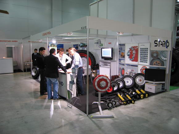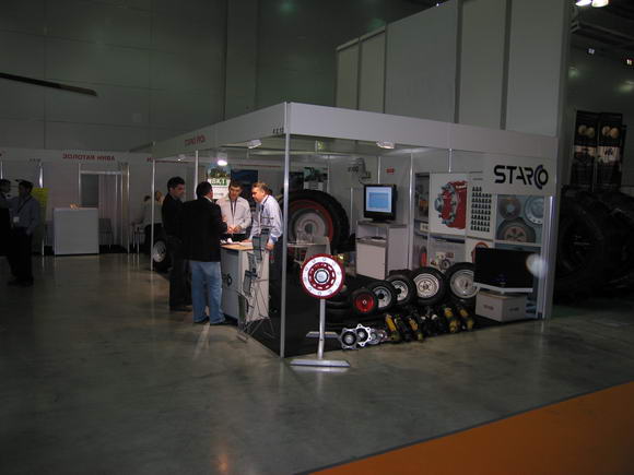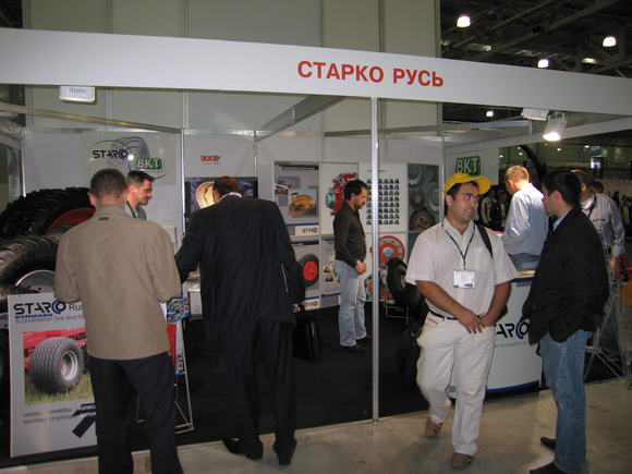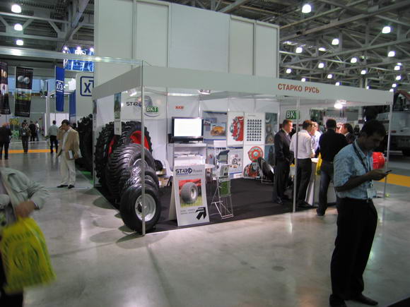 В соответствии с тематикой выставки, главный упор был сделан на колесные решения для сельского хозяйства. Мы экспонировали сдвоенные колеса SHAAD, несколько видов комплектных колес для сельхозтехники марки BKT, STARCO, DELI TYRE.