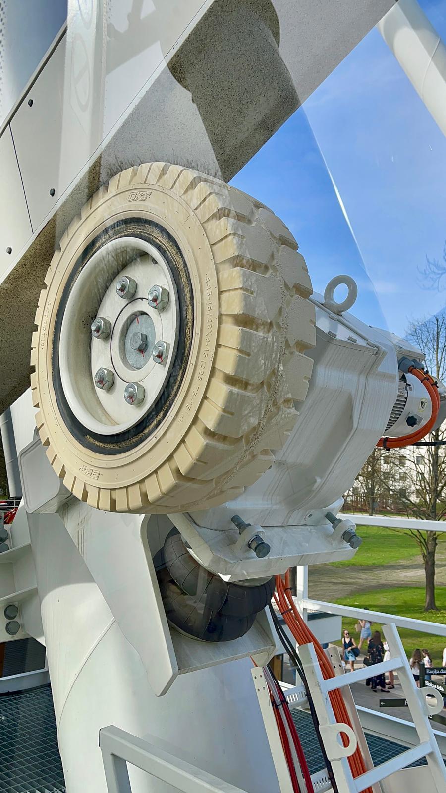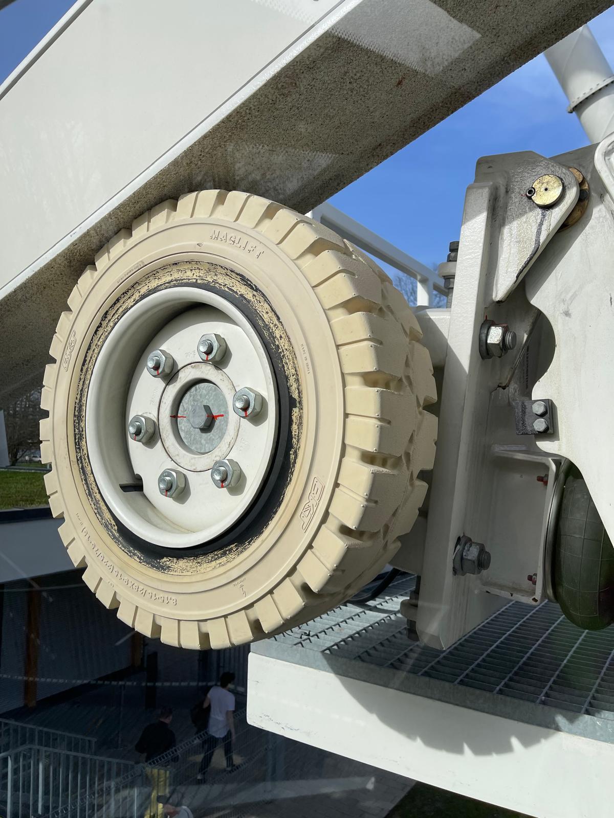 Шолу дөңгелегі жетегінің механизмінде 8.15-15 (28X9-15) өлшемдегі және Non Marking нұсқадағы төрт BKT Maglift тұтас құйылған шина пайдаланылады.