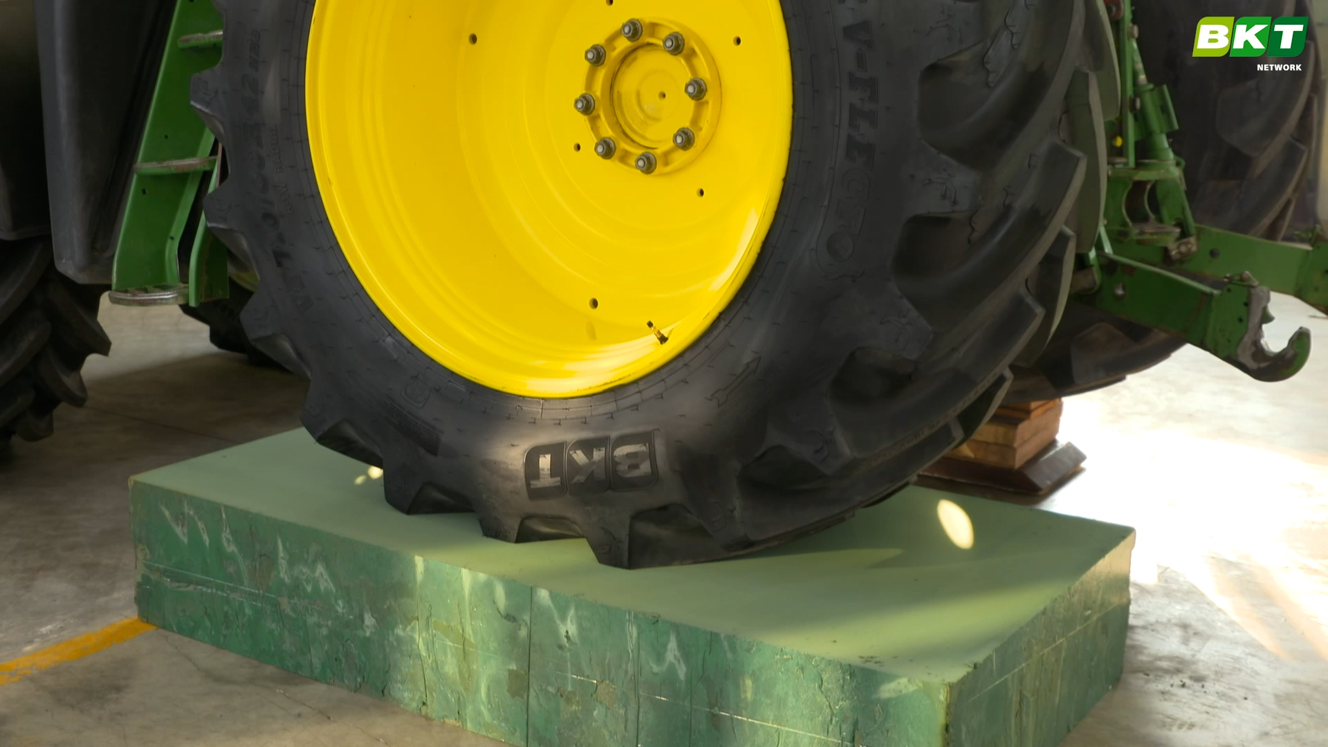 В рамках специальных испытаний измеряется площадь пятна контакта шины с основанием. Специалисты компании BKT разработали и запатентовали специальную методику испытания, предназначенную для быстрого измерения объемного пятна контакта шины. Для этого под шины помещается специальный фенольный вспененный материал. Благодаря своим характеристикам и стабильности вспененный материал позволяет смоделировать сжатие шинами почвы перед посевом.