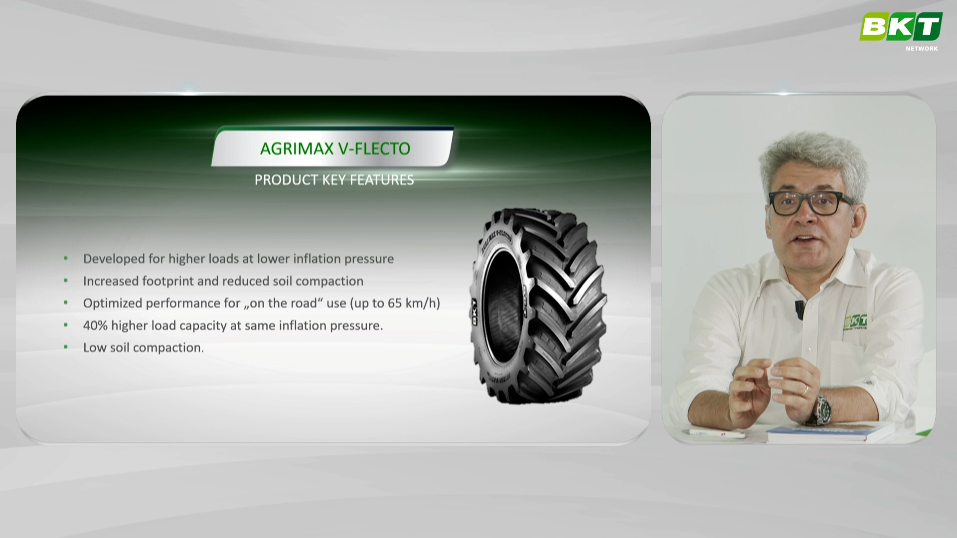 В видеоролике, размещенном на BKT Network, показаны испытания, которые сопровождали вывод шины AGRIMAX V-FLECTO на рынок и которым подвергаются все шины модельного ряда компании BKT. Испытания — это ценный и важный инструмент для оценки эффективности и характеристик внедряемых решений.